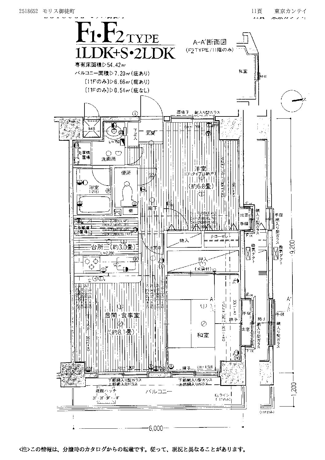 | 専有面積 | 54.42㎡/バルコニー7.20㎡ | 駐車場 | 無し |