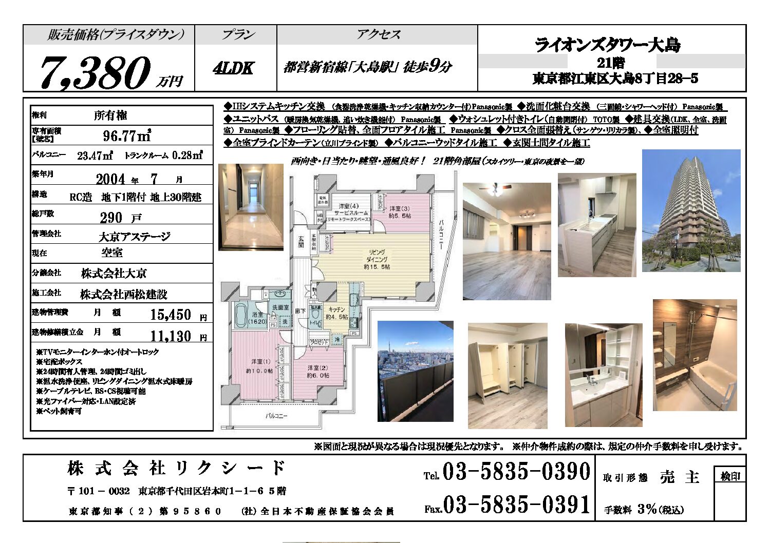 ライオンズタワー大島21F (成約済)中古フルリフォーム物件